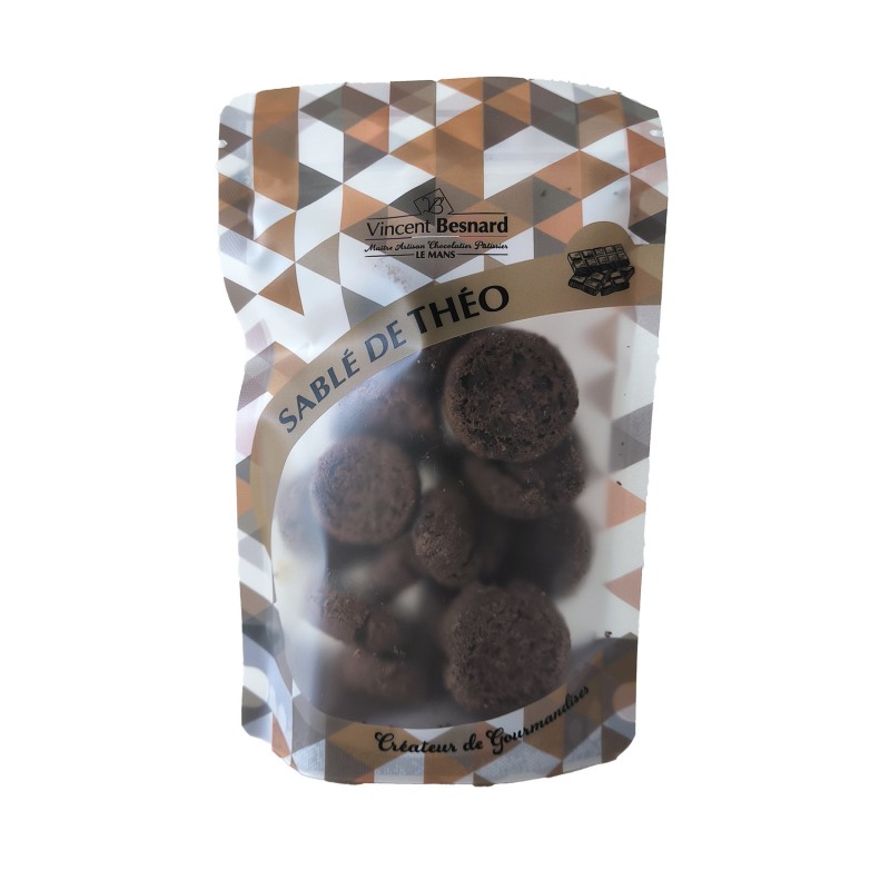 Ingrédients : farine de blé, sucre, beurre, chocolat noir (pâte de cacao origine Saint Domingue, sucre, beurre de cacao, émulsifiant : lécithine de soja, arôme naturel de vanille), poudre de cacao, poudre à lever : bicarbonate de soude [E500], fleur de sel de Guérande, arôme naturel de vanille avec autres arômes naturels